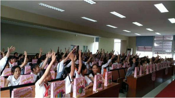 在这样的愿景之下,2018年我们在全国中小学开展“成长的翅膀”青春期初潮知识讲座活动,共计举办了2000多场,覆盖近100万的9-12岁年轻小女生。
